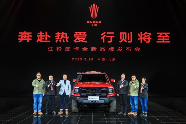 3月20日,江铃皮卡全新品牌“江铃大道”(以下简称大道)在北京正式发布,与此同时,全新技术架构平台、全新皮卡产品也同步亮相。大道定位于中国皮卡全场景专家,是江铃皮卡在市场扩容、消费升级和需求多元化的背景下,准确预判未来市场发展趋势,为满足用户全场景用车需求而推出的开创之作。大道以前瞻的品牌理念、先进的技术架构和硬核产品,为皮卡市场带来全新发展风潮,全面引领皮卡全场景时代。