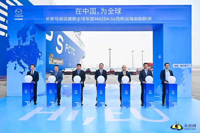 上午 10 时许,发运仪式正式开始。长安马自达相关负责人发表致辞,他表示:“MAZDA 6e 的启航,是长安马自达迈向全球化市场的重要一步,更是我们在新能源领域的实力彰显。” 随后,随着一声清脆的汽笛长鸣,首批发往欧洲市场的 MAZDA 6e 纯电旗舰轿车,在机械臂的精准操作下,缓缓驶上货轮。当最后一辆 MAZDA 6e 完成装载,全场响起热烈掌声,这艘承载着长安马自达全球化梦想的货轮,正式向着欧洲大陆破浪前行,标志着 MAZDA 6e 在欧洲市场进入交付倒计时阶段,长安马自达全球化战略由此迈入新里程。