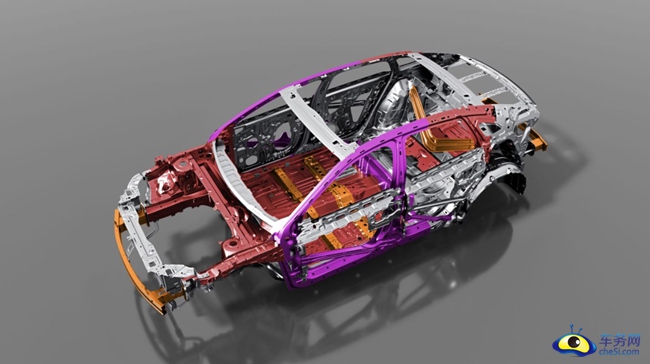 一体式门环设计:采用整体式热冲压方案,采用厚度1.4mm、强度达1500MPa的热成型钢板,高温加热后一次成型,前门洞4个件(A柱外板、A柱上边梁外板 、门槛外板、B柱外板)合并为一个件,实现一套冲压模具、一次冲压操作,完整性高、一体式强,比拼接门环重量更轻,整车扭转刚度达到了29100Nm,相比拼接门环在侧向碰撞和偏置碰撞中提供更好防护,同时对门环进行过电泳处理,不会产生锈蚀。