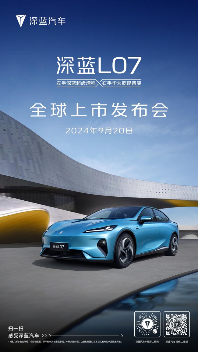 9月13日获悉,继第二十七届成都车展首发亮相后,深蓝汽车全新“科技智享中型轿车”——深蓝L07,将于9月20日迎来正式上市!