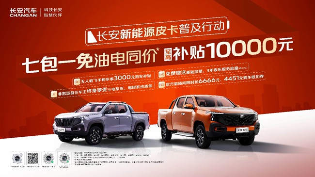 人勤春来早,开工干劲足,一场新能源皮卡的普及风暴正悄然拉开序幕。近日,长安猎手重磅推出“七包一免 油电同价”优惠活动,为消费者带来至高1万元的购车补贴,打造前所未有的购车盛宴。