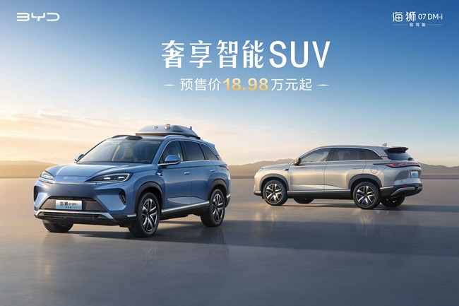 比亚迪海洋网全新中大型SUV海狮07DM-i智驾版,是面向家庭用户打造的家用大五座SUV。新车凭借第五代DM、云辇-C、"天神之眼"高阶智驾等领先技术与科技体验,精准洞察家庭用户对用车安全、舒适与智能的核心需求。海狮07DM-i智驾驶版以"标杆级奶爸车"的硬核实力,重新定义家用SUV出行标准,预售价18.98万元起,到店试驾领略新车魅力,即刻下订可享专属礼遇,智享全家出行新体验!
