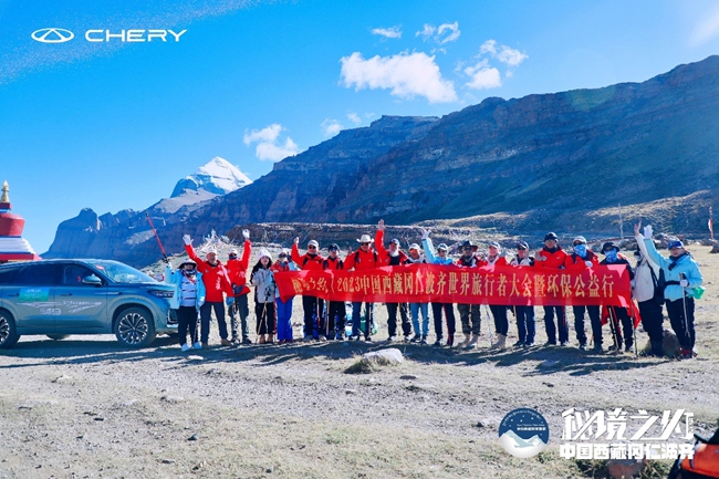 2023年9月19日,主题为“秘境之约2023中国西藏冈仁波齐世界旅行者大会暨环保公益行”的大型环保公益行动在西藏阿里冈仁波齐脚下盛大举行。本次活动为期2天,来自全国各地的环保公益志愿者和各界文化名人环保形象大使、环保志愿者以及参与本次活动的多家汽车俱乐部志愿者,在冈仁波齐山脚下践行两天的环保公益活动,完成了对当地的公益助学及景区沿路垃圾清理并且在海拔6656米的卓玛拉垭口宣读启动“守护者计划”宣言。本次活动在全网热爱西藏旅行的旅行者群体中引发强烈响应和关注。本次活动也受到了自主品牌中坚力量奇瑞汽车SUV家族鼎力支持。