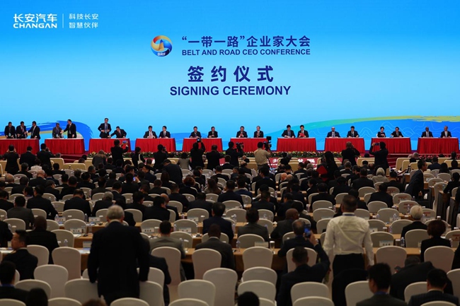 在国家“一带一路”倡议下,长安汽车与全球合作伙伴携手前行、共赢发展,坚持开放合作、绿色发展、互惠互利、合规经营、履行社会责,把更时尚、智能、绿色的产品及优质服务提供给全球消费者,为全球经济一体化建设、推动高质量共建“一带一路”做出长安汽车新的更大贡献。