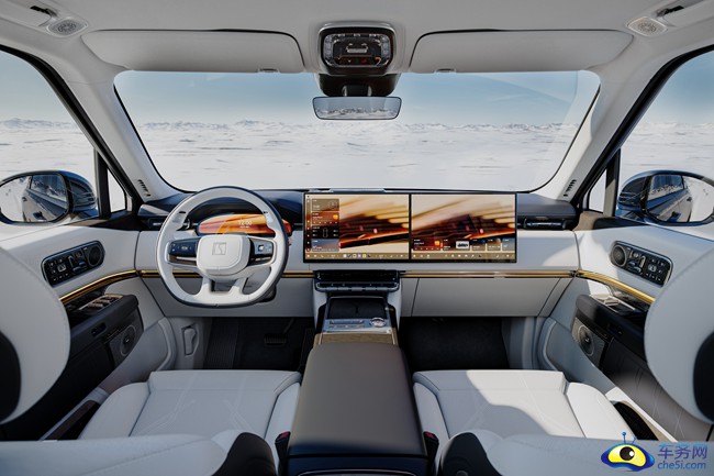 座舱以“通透”为核心,6.3平米座舱面积实现人均超1平米空间,三排乘坐空间均为同级最大。配置上,全车六把座椅采用超柔NAPPA全粒面头层真皮,主驾配备同级唯一主动侧翼支撑;二排“行云座椅”拥有22点位按摩、零重力与伊姆斯躺椅双模式,可180度旋转形成对坐会客厅,搭配9升智能冷暖恒温冰箱;第三排支持135度躺倒与140毫米电动滑移,专属独立天窗打造“阳光房”体验。