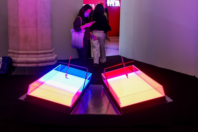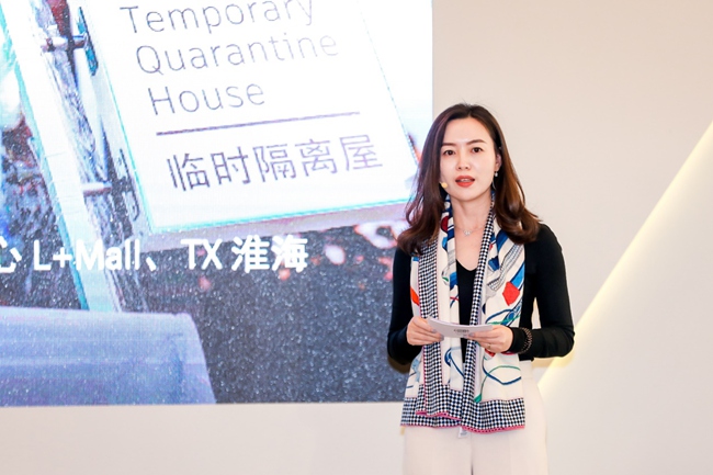 在特别打造的互动展览中,由青年艺术家王欣创作的艺术装置《临时隔离屋》同时亮相上海展览中心、上海陆家嘴中心L Mall和 TX 淮海|年轻力中心三地。艺术家让装置内的巨型柔软毛绒玩具陪伴“隔离”中的参观者,将狭窄逼仄的空间变为其减压和疗愈的温馨场所。