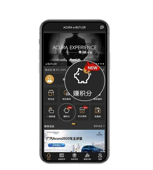 在现场的采访中,广汽本田汽车销售有限公司第二事业本部客户服务部部长井上贵仁先生还特别介绍了e-BUTLER APP最新上线积分商城和赚积分功能。为方便用户的用车生活,广汽Acura通过联盟各大知名电商,为用户打造全场景消费服务平台,实现人车生活的全面覆盖,满足用户一站式个性化需求;新增的积分功能还可通过日常消费赚取Acura积分,兑换各类汽车养护礼品和尊享服务,让养车更加实惠。