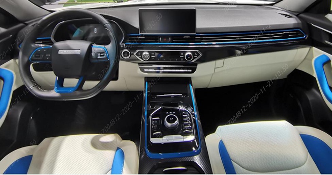 内饰部分,白蓝双色搭配的座椅以及贯穿黑色仪表台的蓝色线条,完美释义新能源元素。同时,采用旋钮档杆增强了操作便利性,也更加凸显科技感。全新捷途X70S EV拥有大量极具未来感的设计元素,而这也是EV消费者人群喜欢的风格之一。