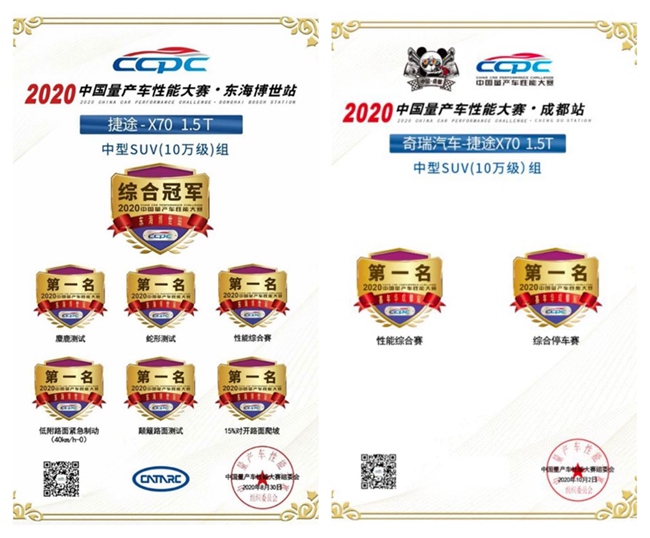 在CCPC中国量产车性能大赛这块“试金石”上,捷途X70通过各种高难度比赛已经获得了多项冠军。荣誉的背后,不只是捷途X70强大实力的表现,更是奇瑞捷途依托于奇瑞控股集团强大的产品研发、智造实力的体现。