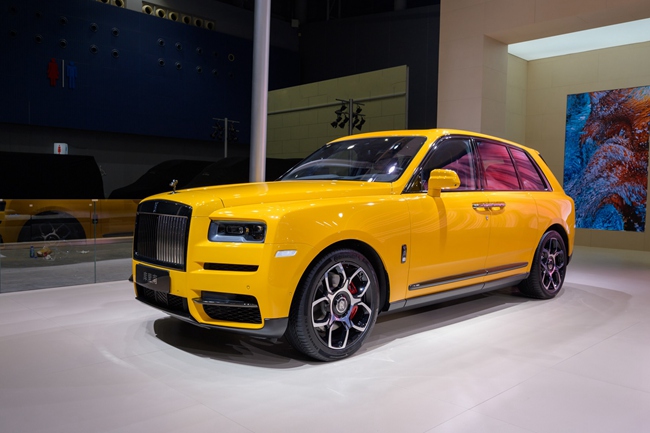 Black Badge车系旨在满足那些与众不同的客户群体对座驾的需求:他们敢于冒险,不拘泥常规,按自己的方式追求非凡成就。Black Badge库里南是劳斯莱斯Black Badge家族中最为大胆的车型。此次亮相广州车展的Black Badge库里南的车身外观颜色是由Bespoke高级定制专门打造的锻造黄色,搭配黑色和锻造黄色的拼色内饰,完美诠释无畏、果敢的品牌精神。车头欢庆女神极具光泽度的黑色镀铬材质进一步延伸至底座,成就最具辨识度的黑夜魅惑女郎。全新22英寸铸造合金轮毂配上劳斯莱斯品牌史上第一款彩色刹车钳,展现出专属的Black Badge库里南风范。