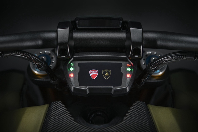 杜卡迪设计中心从兰博基尼Sián FKP 37车型上汲取灵感,将这台限量版摩托车的每处细节均进行了重新设计,并采用了碳纤维等轻量化珍贵材料。除了进气口和散热器保护盖外,消音器盖板、扰流板、油箱盖、座椅、前后挡泥板、仪表盘盖板和前大灯边框,均采用了碳纤维材质。