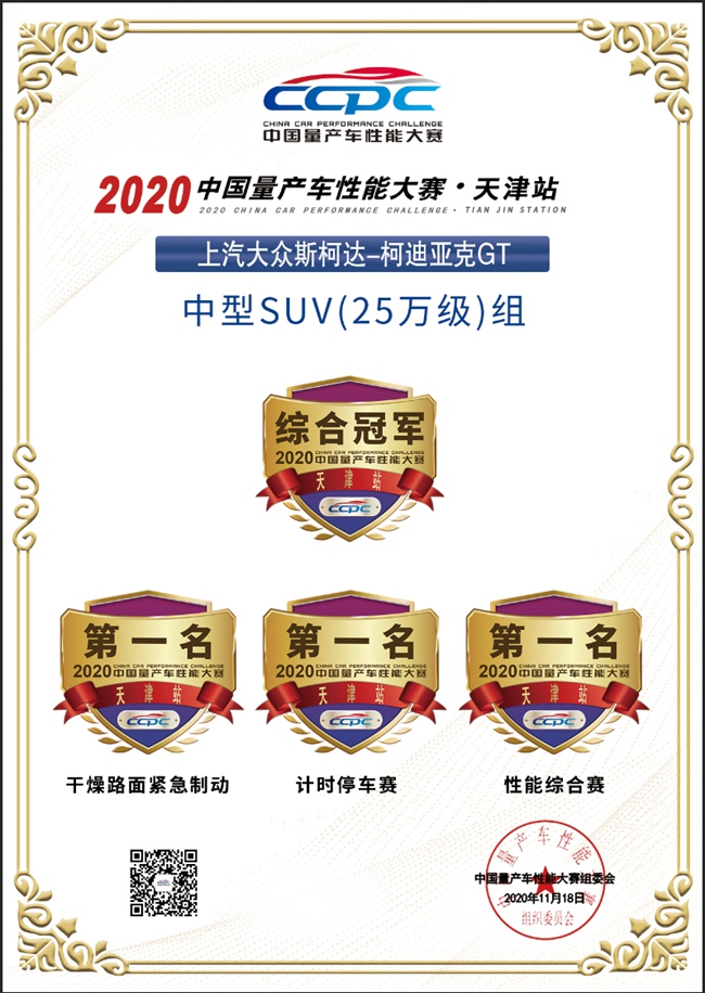 近日,2020中国量产车性能大赛(简称CCPC大赛)年度收官之战在天津燃情上演。上汽大众斯柯达柯迪亚克GT包揽天津站干燥路面紧急制动、计时停车赛、性能综合赛三个单项冠军以及中型SUV(25万级)组综合冠军,并将CCPC大赛该组别年度最佳车型收入囊中。