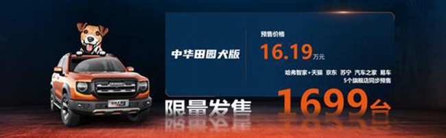 16.19万的预售价格,30万 的豪华体验,哈弗大狗2.0T四驱型广州车展不仅凭硬实力争宠,还为“认养”它的准车主准备了7重大礼,包括:减压金融礼:至高10万24期0息;诚意置换礼:老客户至高7000元置换补贴;超值增购礼:2000元增购补贴;爱宠保养礼:6年12次免费基础保养;无限流量礼:基础流量终身免费,尊享、娱乐服务流量3年免费;终身质保礼:发动机、变速器核心零部件终身质保;专属潮牌礼:购车即赠送哈弗大狗专属车标一套。首批预售数量仅限1699台,想在2021年初开大狗2.0T四驱新车,这次机会不容错过,任选哈弗智家、天猫、京东、苏宁、汽车之家、易车5个旗舰店就能把中意的猛宠领养回家!