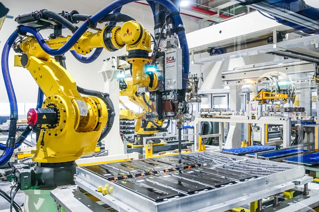 同时,在焊接、涂胶等核心工艺中,车间也充分发挥数字化制造优势,采用了自动检测机器人对焊缝、尺寸、涂胶、气密性等进行实时监控和测量,确保电池包稳定性和质量安全。