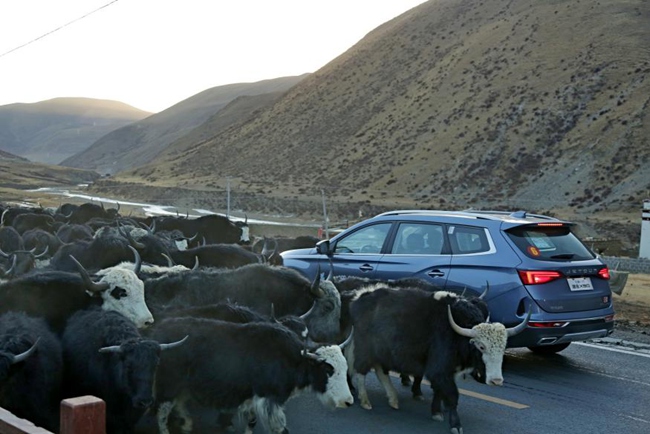 G318国道上牦牛群屡见不鲜,温馨提示一定要保持车距、注意礼让,千万不要按喇叭,否则可能会惊吓到牦牛群,再说稍等几分钟看看憨态可掬的2021年“吉祥物”,说不定会带来好运。
