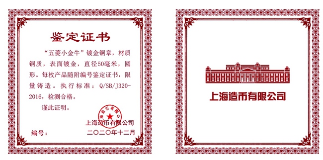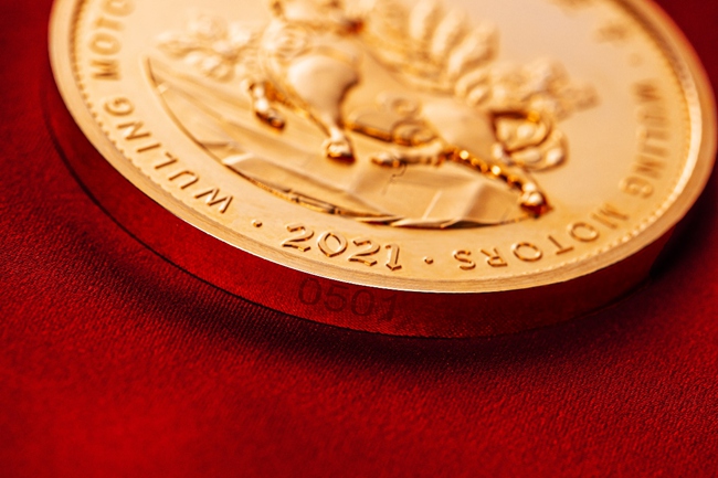 五菱牛年鎏金纪念章采用24K铜镀金铸造,净重50g,由上汽通用五菱携手国家百年造币企业——上海造币有限公司,基于全世界最大的硬币坯饼生产基地、最先进的硬币、金银币(章)制造设备联合打造,采用北京奥运会纪念币、北京奥运会“金镶玉”奖牌同厂工艺,为人民打造世界品质的纪念章,全国限量发布,每枚纪念章随附编号鉴定证书,历经久远仍能价值永存。