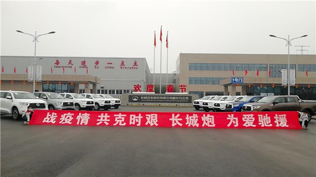 为驰援一线防疫工作展开,长城汽车在2020年初短短半个月时间内,相继向湖北、重庆、保定等地捐款捐物,包括向湖北省慈善总会捐赠人民币500万元,向重庆慈善总会捐赠总价值115万元的长城炮皮卡,向河北省保定市相关慈善机构捐赠270万元,用于购买急需的疫情防控物资及其他医疗耗材等。