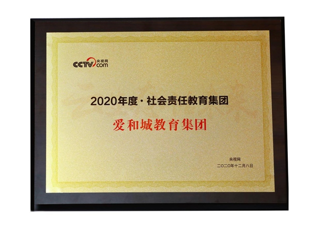 爱和城教育荣获央视网“2020年度·社会责任教育集团”奖项