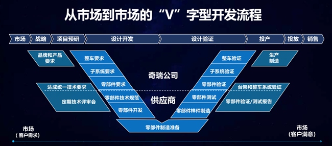 为了给客户提供更好的产品,奇瑞汽车构建了“由市场到市场”的“V”字型正向研发体系,将用户痛点和需求纳入产品开发的核心环节,作为产品升级的关键,真正实现“以客户为中心”的营销理念。