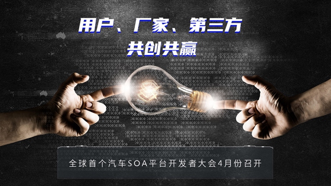 正如同开源的软件应用商城成就了智能手机的生态,开放的汽车SOA平台将产生源源不断的大数据,驱动产品和服务快速连续迭代,从而推动汽车加速进化、价值跃升,让人们畅享未来智慧交通的自由与便利。全球首个汽车SOA平台开发者大会将于4月份召开,中国汽车龙头上汽集团正向整个汽车行业、汽车用户、第三方开发者发出诚挚邀请,共同打造拥有海量应用软件、千人千面体验、贴心入微服务的“软件汽车”,携手在SOA软件平台上搭建“共创、共赢”的智能汽车生态。