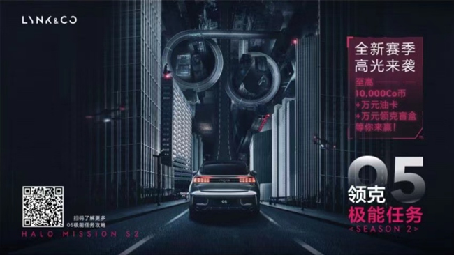 .05 Halo Mission极能任务:全新赛季开启,至高一万Co币、万元油卡、万元领克精选盲盒,等你来赢!领克05车主及粉丝可扫描下方二维码,即刻开启极能任务之旅!