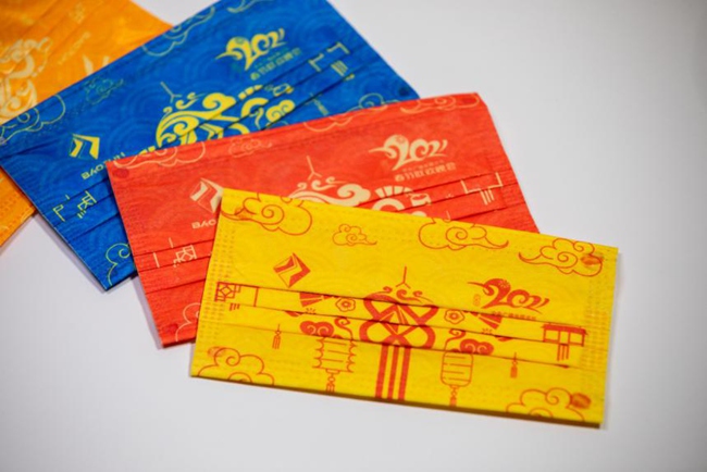 央视元宵晚会“新宝骏中国结”口罩,从中国传统文化符号——“中国结”中汲取设计灵感,与新宝骏钻石 LOGO完美融合,周边辅以花灯、爆竹、祥云等中式新春元素,以传统之美寓意牛年祥瑞,将祝福带给全国人民。