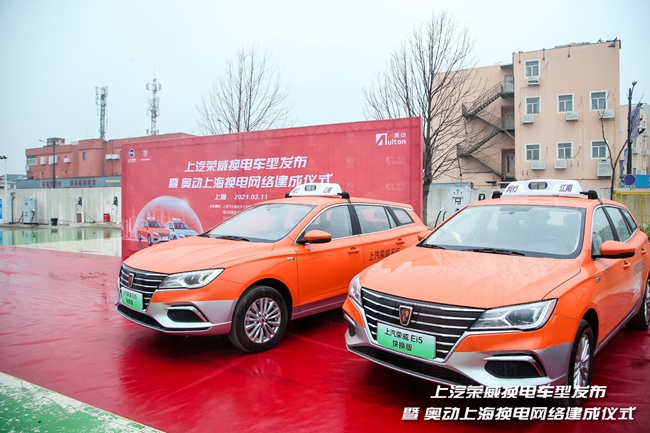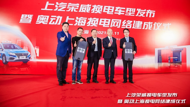 上汽荣威换电车型发布暨奥动新能源上海换电服务网络建成仪式,在奥动上海换电站001号——上海虹桥机场南站隆重举行,由上海汽车集团股份有限公司乘用车公司(以下简称“上汽乘用车”)、奥动新能源汽车科技有限公司(以下简称“奥动新能源”)、大众交通(集团)股份有限公司(以下简称“大众交通”)、上海江南旅游服务有限公司(以下简称“江南旅游”)联合主办。