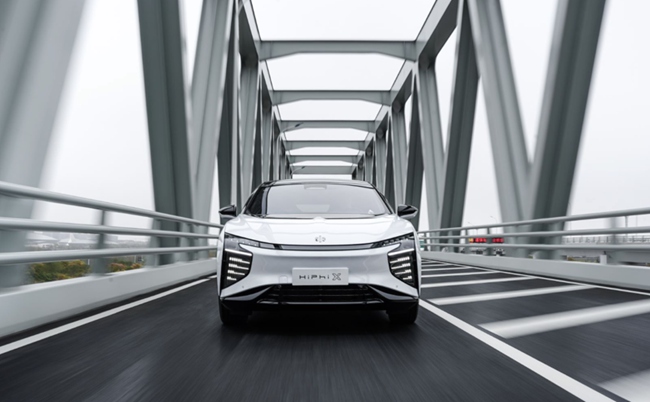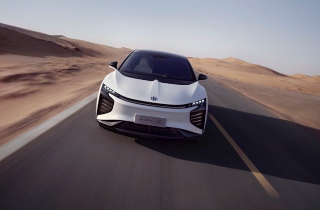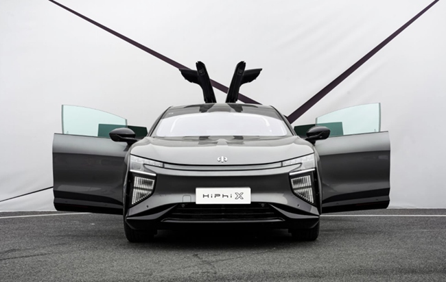 在动力上,HiPhi X全系搭载前后220kW永磁同步电机,最大功率440kW,最大扭矩820N·m,最高车速200km/h,电池类型是三元锂电池,电池能量97kWh,续航里程550km,快充0.75小时充电80%,百公里加速最快3.9s。车辆的悬架使用了较多的铝制材料,前双叉臂式独立悬架和后五连杆独立悬架搭配起来的减振系统,加上空气悬挂以及CDC连续可变阻尼减震系统,不但可以支持车身50mm的高度调整,还进一步提升了悬架的响应能力。