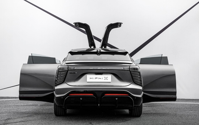 外观上,HiPhi X从侧面看,上半身超跑,下半身SUV,但得益于它原生电动平台的设计比例,结合得毫无违和感。最大的吸睛点就在于车门的设计,6扇电动门,共同构成了一个No Touch展翼门系统。轻踩刹车,触按开门键,车门就会轻轻打开和自动关闭。对开门和后排展翼门的设计,方便了乘客优雅地直立上下车。