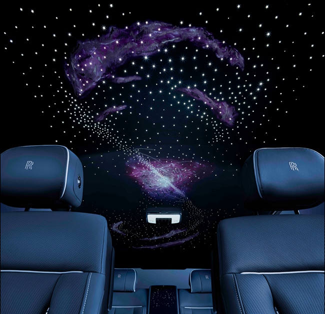 幻影“天魄”典藏版将这种非凡的自然力量,绘于Bespoke高级定制星光顶中央。车内顶棚设计由细腻的光纤照明与精致的Bespoke高级定制刺绣所融贯而成,从而打造出瑰丽非凡的脉冲星空顶(Pulsar Headliner)。