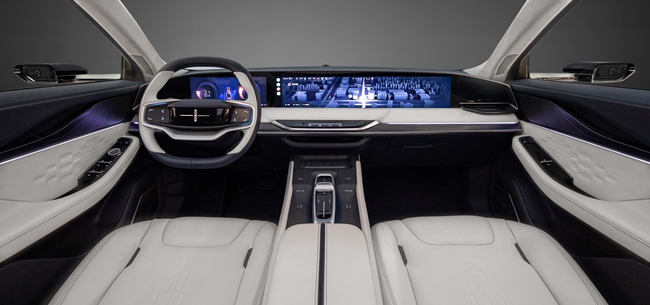 打开Zephyr Reflection量产概念车的车门,为中国年轻一代客户打造的“内在之境”即刻展现,使驾乘者能够尽情沉浸在轻松而减压的环境中。依托“地平线设计”,大量横向平直线条结合由主驾延伸至副驾前方的贯穿式全景大屏,为Lincoln Zephyr Reflection量产概念车营造出极具科技感且明亮敞阔的车内空间。
