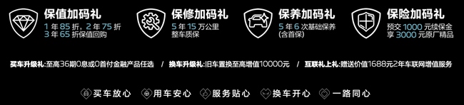 今天,东风标致将相关政策再度扩容,针对全新4008/全新5008推出开创行业新标杆的“4保加码”礼,包括保值加码礼,1年85折,2年75折,3年65折保值回购;保修加码礼,5年15万公里整车质保;保养加码礼,5年6次基础保养(含首保);保险加码礼,预交1000元续保金,送3000元原厂精品。此外,还可享受上市升级礼,即买车升级礼,任选至高36期0息或0首付金融产品;换车升级礼,至高10000元增值换购;互联礼上礼,赠送价值1688元2年车联网增值服务(部分车型)。