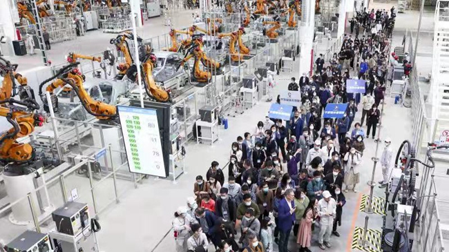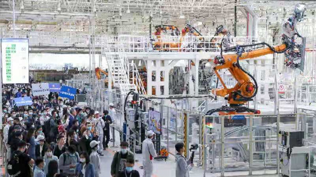 其中,冲压车间采用德国斯特曼全自动高速冲压线,并由日本发那科机器人组成自动装箱系统,实现生产、装箱和运输全自动化;车身车间采用德国库卡设备和技术,自动化率达100%,打造世界最先进的高端智能“黑灯工厂”;涂装车间采用德国杜尔生产线,前处理电泳翻转式输送,干式漆雾分离,涂胶、喷涂100%自动化,全流程智能环保。