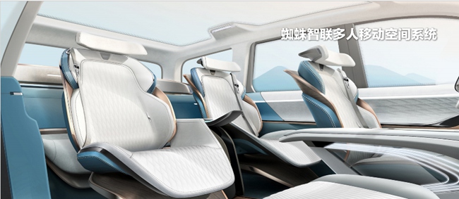 面向未来车内多人不同的体验需求,MIFA概念车通过全座位OMS智能检测等车机、云端、用户的复杂科技支撑,可实现后排VIP座椅姿态多种切换,为用户营造多人移动空间的车内智能体验。其中,全座位OMS智能检测功能,可精确识别每个座椅的乘客身份。当即将开会的用户上车时,“蜘蛛智联”系统可智能依据日程,开启会议大屏,专属音区、座椅、空调皆调至利于思考的状态,自动完成会议场景的搭建;而当家人上车后,用户挪到左侧,视频会议的环境也将随着用户挪至左侧,无缝衔接;哪怕是用户换乘另一台MIFA,车内依然会为用户开启专属于个人的会议场景,甚至之前的会议也能随之继续。