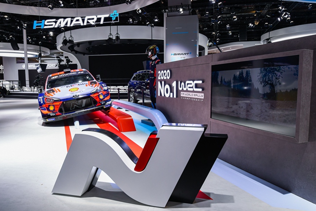 进入现代展台,最“潮”的当属身着“运动迷彩服”的现代汽车i20 Coupe WRC赛事冠军车。该车型集现代汽车众多的高性能技术于一身,为现场观众激情演绎了专属于现代汽车高性能N品牌的独特魅力。作为2020年世界汽车拉力锦标赛(WRC)冠军赛车,现代汽车i20 Coupe WRC拥有灵敏的操控性和随传随到的澎湃动力。汽车厂商可基于量产车型开发一辆征战赛道的竞技车型,反之也可利用比赛中积累的技术,不断完善升级、反哺量产车型。