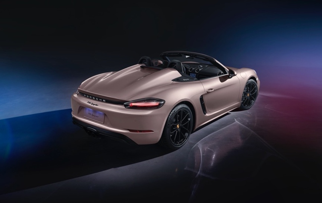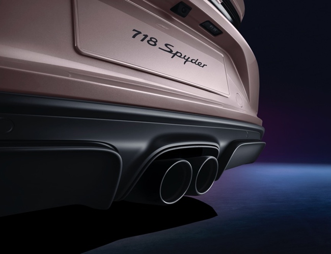 全新 718 Spyder 的外观极具辨识度。轻量化的可折叠车顶系统采用带电控锁定的手动开合方式,在延续传统的仪式感同时,也能确保方便流畅的日常使用。车顶无论开合均可呈现一个优雅的车身侧面轮廓。另一项标志性设计是由头枕后方延伸至尾部的双驼峰整流罩,不仅令全新 718 Spyder 极具辨识度,更优化了整车的空气动力学。此外,标配的带 LED 日间行车灯的双氙气大灯、带四点式刹车灯和转向灯的 LED 熏黑尾灯、SportDesign 前后裙板、高光黑色运动排气系统双尾管、20 英寸 718 Spyder 轻质合金车轮及专属的自动延伸后扰流板进一步强化了全新 718 Spyder 的动感造型。