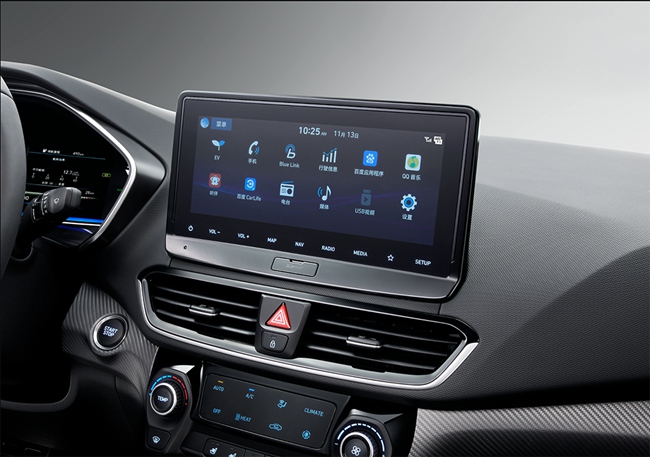 在车联网系统方面,菲斯塔纯电动采用了10.25英寸中控液晶显示屏,内部集成了BlueLink、第二代百度智能网联系统,可实现智能语音交互与控制(空调/车窗/天窗/前后风挡玻璃除霜)、实时路况、智能导航、远程控制等功能,为用户行车提供便利。此外,菲斯塔纯电动的中控屏还配备有EV专属页面可用于查看EV系统运转信息及碳排放信息。
