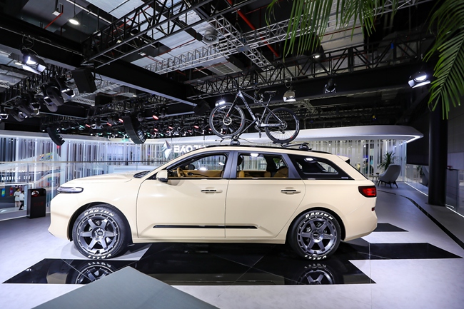 此前,在“Valli星空露营派对”预售活动上,改装车“小白白”凭借相互衬托的白色车身与白色轮毂罩,以及自身良好的拖拽能力,成为吸睛无数的“牵引式休旅车”。整车加装了原车同款设计的拖箱,实现拖拽小型拖车的功能,让广大用户拥有更为舒适、便捷的休旅出行体验。此次“小白白”再“坐阵”车展现场,引众人围观拍照,瞬间点燃现场气氛。