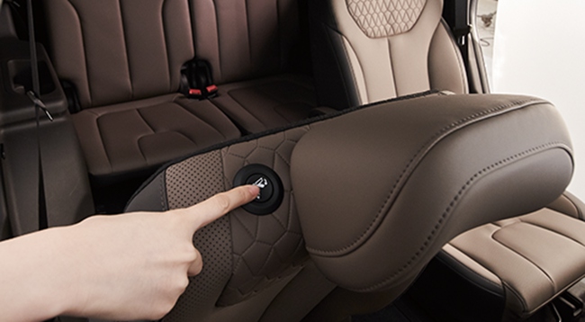 值得一提的是,第四代胜达利用第二排座椅的空间间隔,打造出方便老人和小孩进出第三排的Walk through设计:按下二排座椅左右两侧的“一键Walk in”按键,座椅就能折叠并前移,右手扶住椅背,左手抓住后侧围设计的手扣,就能轻松进入第三排。我的父母跟孩子看过这个功能的演示后,都拍手称赞。