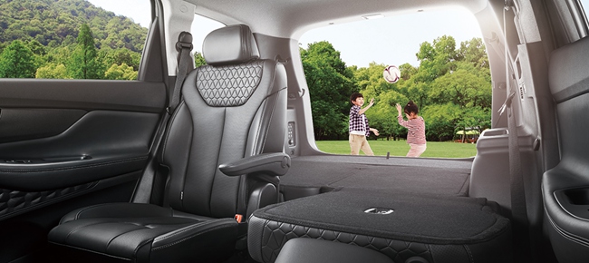 带着两个孩子出行,每次大包小包都像搬家一样,所以我们对后备箱容积的需求也是比较高的。第四代胜达二、三排座椅可以实现一键放倒,不仅空间平坦,容积也达到了同级最大的591L,这样充足的空间放置婴儿手推车、行李箱、纸尿布等物品也绰绰有余。