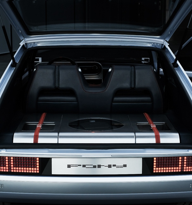 “传承系列 PONY”拥有经典复古的掀背车身轮廓,在哑光漆面涂装下从前到后闪烁着银色的星光。而竖立在风挡玻璃前方翼子板上的数字后视镜、像素设计的圆形前大灯与U型的LED尾灯则更加吸引眼球。值得注意的是,这组别致的前后大灯与IONIQ(艾尼氪) 5和45概念车所使用的“像素之旅(Pixel Road Trip)”设计方法同根同源,以8位图像作为时尚复古风格的设计表达元素。