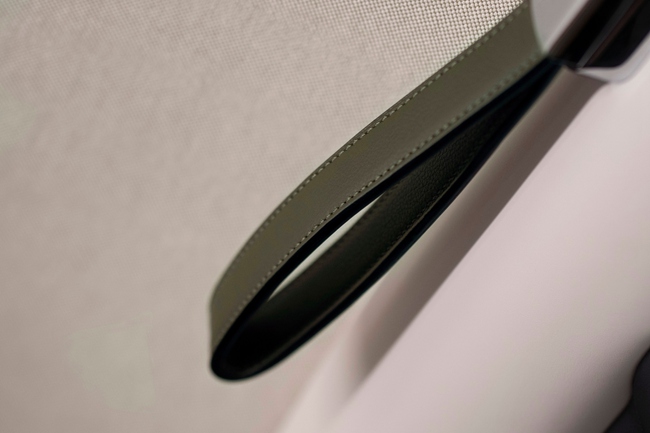 该Bespoke高级定制车型的内饰主要采用爱马仕皮革,并且客户常触及之处均采用该皮革,如方向盘、把手、变速器挡把、汽车温度设置旋钮等。