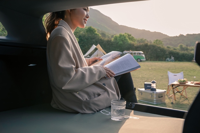 首款五星级酒店0压定制床垫长1600mm,宽1000mm,厚度40mm,宽大面积可轻松容纳2-3人平躺或侧卧,还配套有长1000mm*宽250mm*高80mm的枕头。床垫和枕头可进行一体式收纳,收纳后的整体容积约80L,携带方便,既可轻易放入“车顶大平层”行李箱中,也可在“车内大平层”自由平铺开来,满足多场景的使用需求。