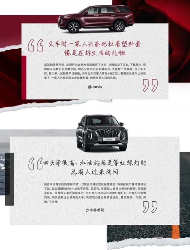 据了解,参加此次试驾活动的消费者大部分为二次购车,且以现代品牌二次回购车主及中高端品牌为主。对于有消费升级需求的用户及中高端车主用户来说,对车的要求已不仅仅是车辆本身,更是对高品质汽车生活的不妥协和不将就;他们不仅渴望满足自己的用车需求,更希望考虑和照顾家人以及更多人的感受。帕里斯帝正是这样一款满足他们所有需求的优质座驾,以优于同级的品质实力赢得了他们的青睐。尤其那些选择二次回购的车主,再次证明了消费者对现代品牌的信赖与热爱。