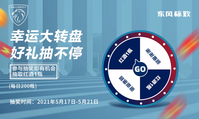 此外,东风标致还提供了“5心守护”、“4保加码(仅适用于全新4008/全新5008车型)2项专属保障,以及至高享36期0利息的“0压力购车”政策,为用户提供全方位权益保障。在5月17日-21日期间,每日会通过大转盘抽奖的形式回馈曾在车品商城上消费过的狮友汇客户,客户凭抽到的红酒兑换券核销码至经销店领取。每日限量200瓶,单瓶装红酒。