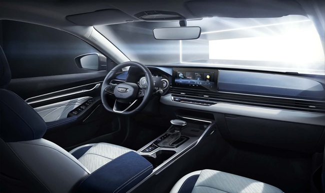 从内饰上看,第4代帝豪的内饰设计显然经过全面革新,科技、简约而不简单。新车从数码产品中汲取设计灵感,打造了同级独有的宽体科技座舱,天际贯穿式科技中控、D型多功能方向盘、12.3英寸高清数字仪表盘、10.25英寸悬浮式高清中控大屏等设计蕴含着浓厚的科技风。新车除了有丰富的科技配置以外,在内饰的选材和工艺上也极其考究,整车软性材质覆盖率超过85%,搭配同级独有的激光镭雕技术,营造出科技优雅的空间品质感。