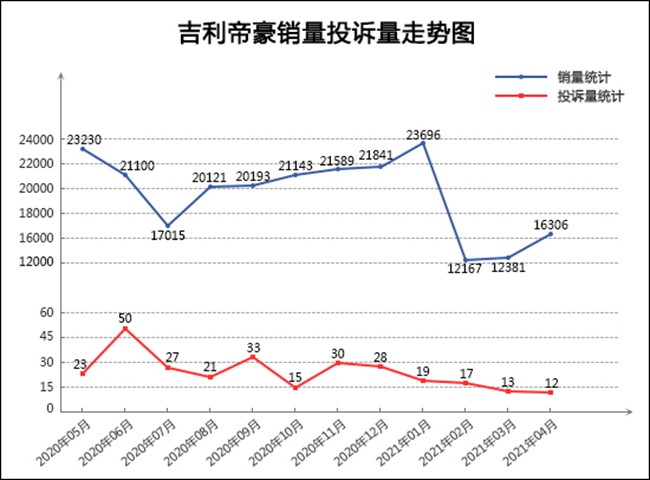 帝豪家族作为吉利品牌旗下最为畅销的车系之一,上市12年以来,收获了317万用户的信赖。这其中,作为帝豪家族的领军者,吉利帝豪贡献了绝大部分销量成绩,连续9年稳居中国品牌轿车销量冠军宝座,成为国内轿车市场销量排行榜前十名中唯一的自主品牌车型。然而,在进入2021年后,帝豪的销量表现有些低迷,尽管仍保持着过万的月销量,但与过往月均销量近2万辆的成绩相比,仍有不小的差距。但值得欣慰的是,帝豪的月投诉量近半年来持续走低,质量口碑提升明显,4月份投诉量更是降至近一年来的最低点。反观其4月份的销量,环比也出现了较大涨幅,尽管这一代车型已经进入产品末期,但依旧保持了足够的市场活力。随着三季度换代车型的上市,吉利帝豪也有望再现昔日荣光,冲击更高的销量天花板。