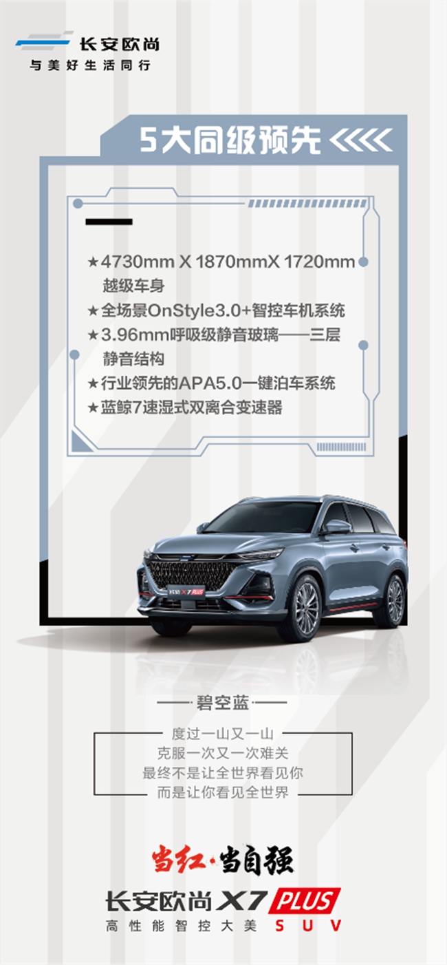 本次长安欧尚X7PLUS的登场,凭借着五大行业领先、五大行业首创、五大同级领先、五大全系标配足以体现出对消费者的十足诚意,相信在深刻洞察了当今消费者的用车需求后,新车将以极致价值赋能客户的用车生活。8月27日,新车开启全球预售,让我们一同期待!