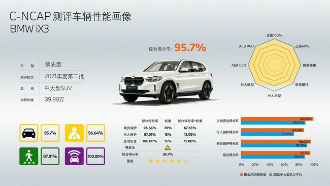 近日,BMW iX3以95.7%的综合得分率荣膺C-NCAP超五星评价,打破现行测试管理规则下总得分率纪录,在已参与测试的82款车型中位列第一。值得一提的是,车辆在主动安全测试项目中取得了满分,且所有正式评价试验项目成绩均排名前20%。BMW iX3以中国沈阳为唯一生产基地并出口海外,兑现了宝马“在中国,为中国,为世界”的承诺,更展现了宝马灵活的全球生产能力,以及全球一致的高质量生产水准。而此次优异的碰撞表现,也再次印证华晨宝马的本土研发和生产能力达到了全新高度,进一步巩固了在未来出行领域的领先地位。