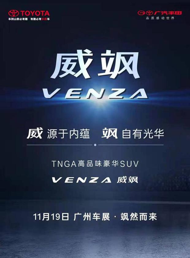 10月27日广汽丰田公布首款TNGA豪华中型SUV, 新车命名“威飒VENZA”,计划于11月19日广州车展正式亮相,2022年一季度上市。
